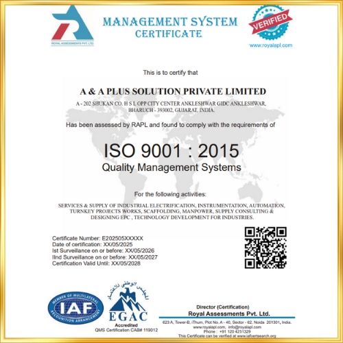 A & A Plus Solution Pvt. Ltd. is a one-stop engineering solutions provider specializing in Electrical, Instrumentation, Automation, Scaffolding, EPC, and Turnkey Project Execution.